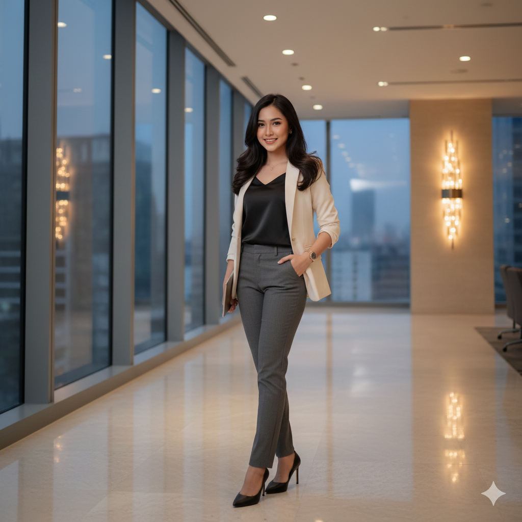 Soft layer memberikan efek lebih ringan, natural flow, dan mudah ditata setiap hari. Dengan sedikit blow soft curl, tampilan langsung berubah menjadi feminin namun tetap profesional. Cocok untuk pekerja kantor yang ingin tampil effortless tapi tetap stylish.