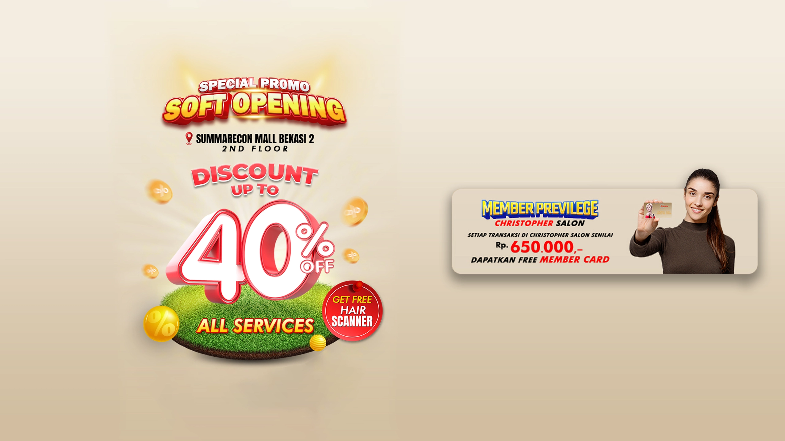 Christopher Salon is proud to announce the Soft Opening of our newest branch at Summarecon Mall Bekasi 2 – 2nd Floor, and we’re celebrating with an exclusive limited-time promotion you don’t want to miss.